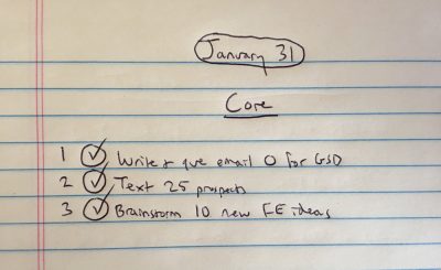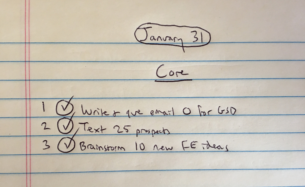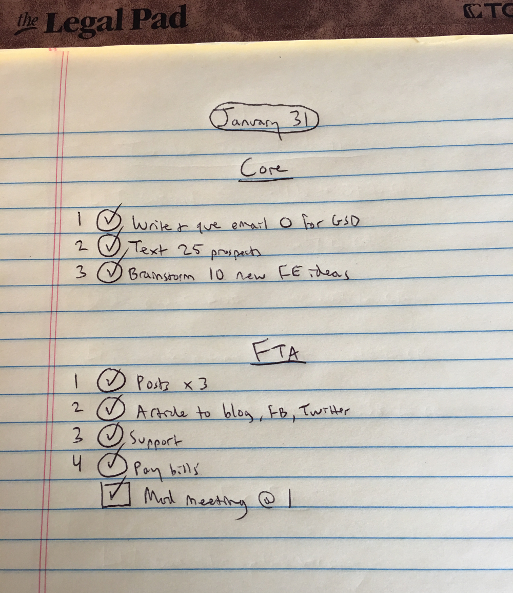 To get you started, here’s the crown jewel of my system, my daily action plan, written on one sheet of paper.