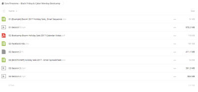 IMPORTANT: This is it. “Ezra Firestone – Black Friday & Cyber Monday Bootcamp” It is totally Downloadable You will have access to it immediately. In the event of a broken or lost link, we will quickly renew your link. We appreciate your patience.