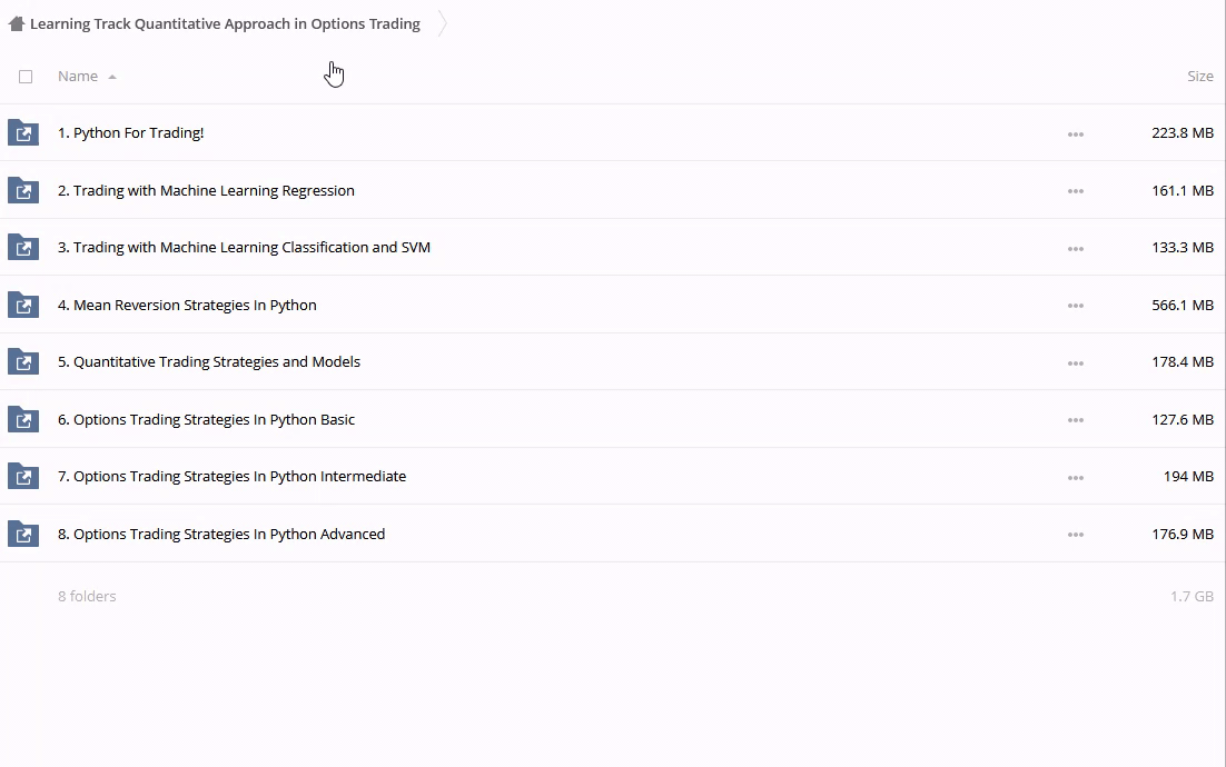 IMPORTANT: This is it. “Learning Track – Quantitative Approach in Options Trading” It is totally Downloadable You will have access to it immediately. In the event of a broken or lost link, we will quickly renew it. We appreciate your patience.