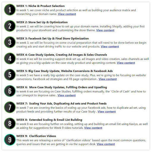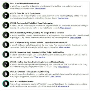 - Right here is how the coaching is mapped out (you get all 9 weeks of content material immediately)…